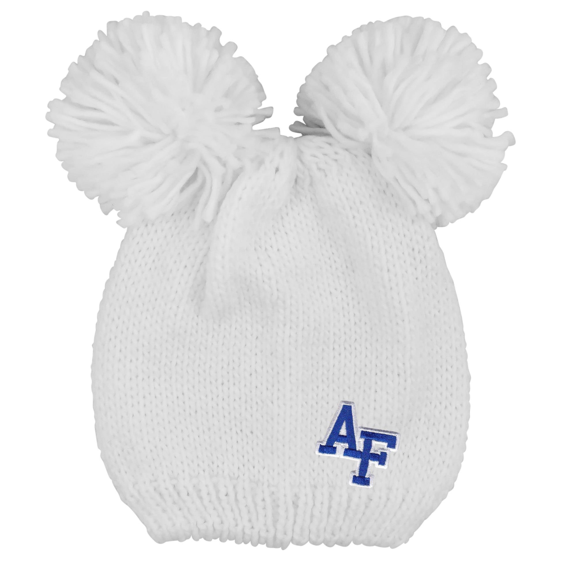 The AF Leia Double Pom Knit Hat blends warmth, fun, and Academy pride. Crafted from soft white knit, it features two playful faux fur pom-poms for a whimsical winter look. Perfect for snowy adventures, campus events, or just staying cozy between classes, this hat offers both comfort and USAFA style. Celebrate the season while honoring Air Force Academy tradition with this charming and functional winter accessory.