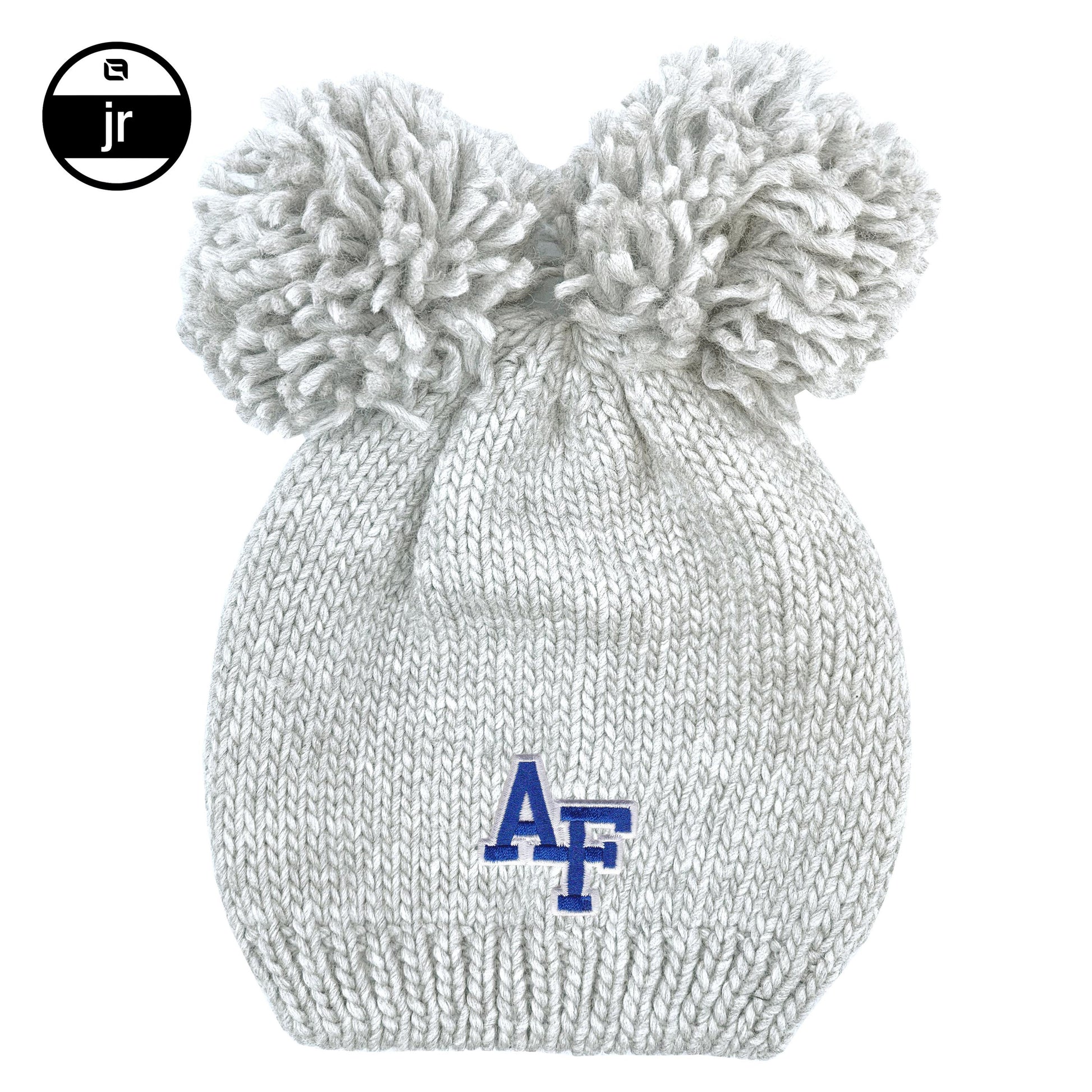 Keep your young cadet cozy and stylish with the AF Youth Rey Double Pom Knit Hat in White. Featuring playful double pom poms and embroidered Air Force branding, it's perfect for winter days or showing school spirit.
