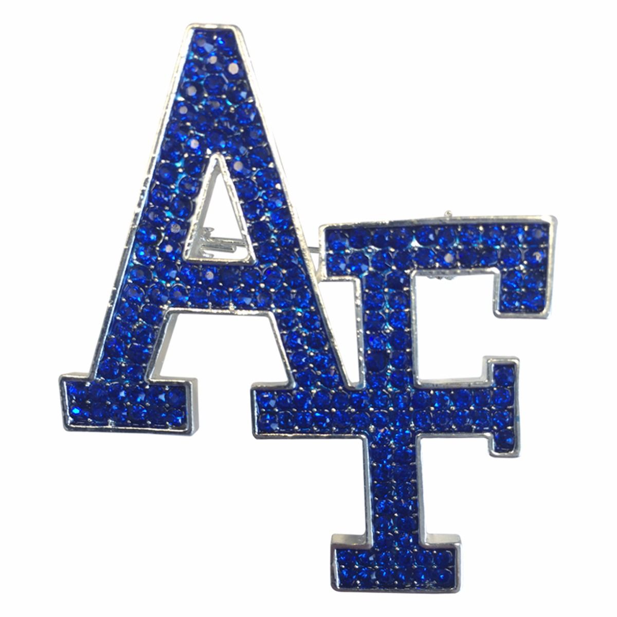 Add a touch of elegance to your attire with the 2" Air Force Academy Preciosa Crystal Rhodium Brooch. Featuring sapphire-colored Preciosa crystals and rhodium plating, this brooch showcases the iconic 'AF' emblem, perfect for formal events or everyday wear.