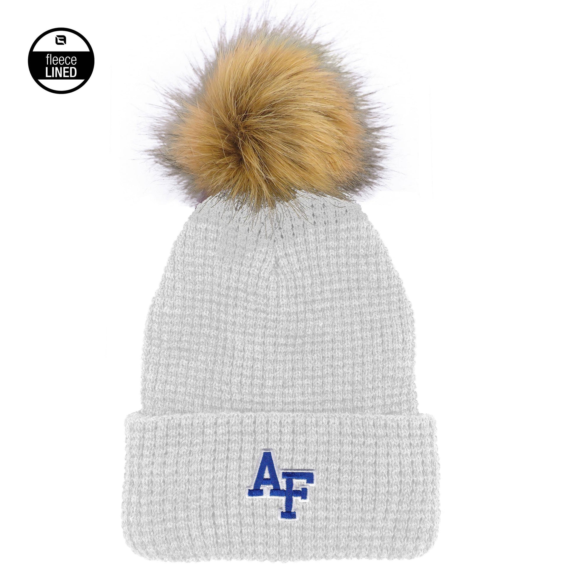 Stay warm in style with the AF Belgian Knit Cuff Hat. White waffle pattern, cozy fleece lining, and a playful faux fur pom—perfect for showing USAFA tradition and spirit.