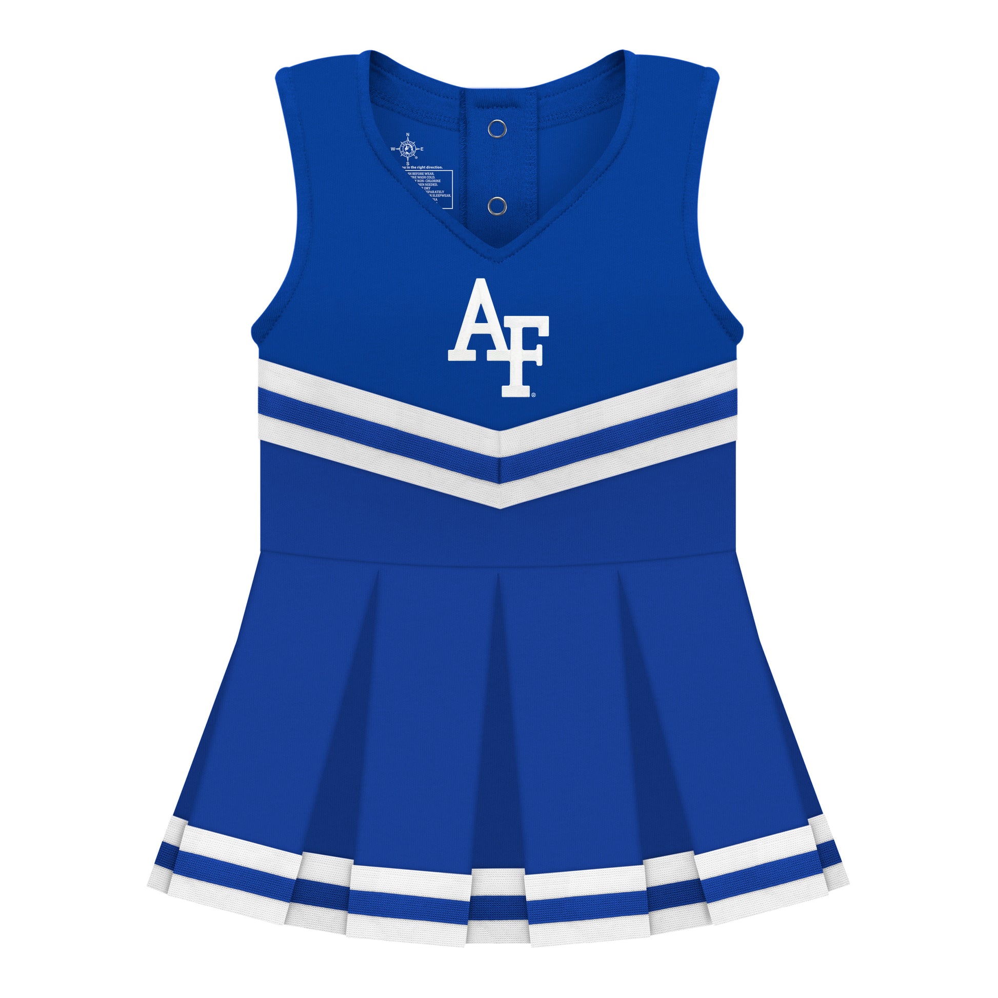 Let your little cadet cheer in style with the Air Force Solid Cheer Bodysuit Dress. Featuring bold Air Force branding and a comfortable fit, it's perfect for game days or everyday wear.