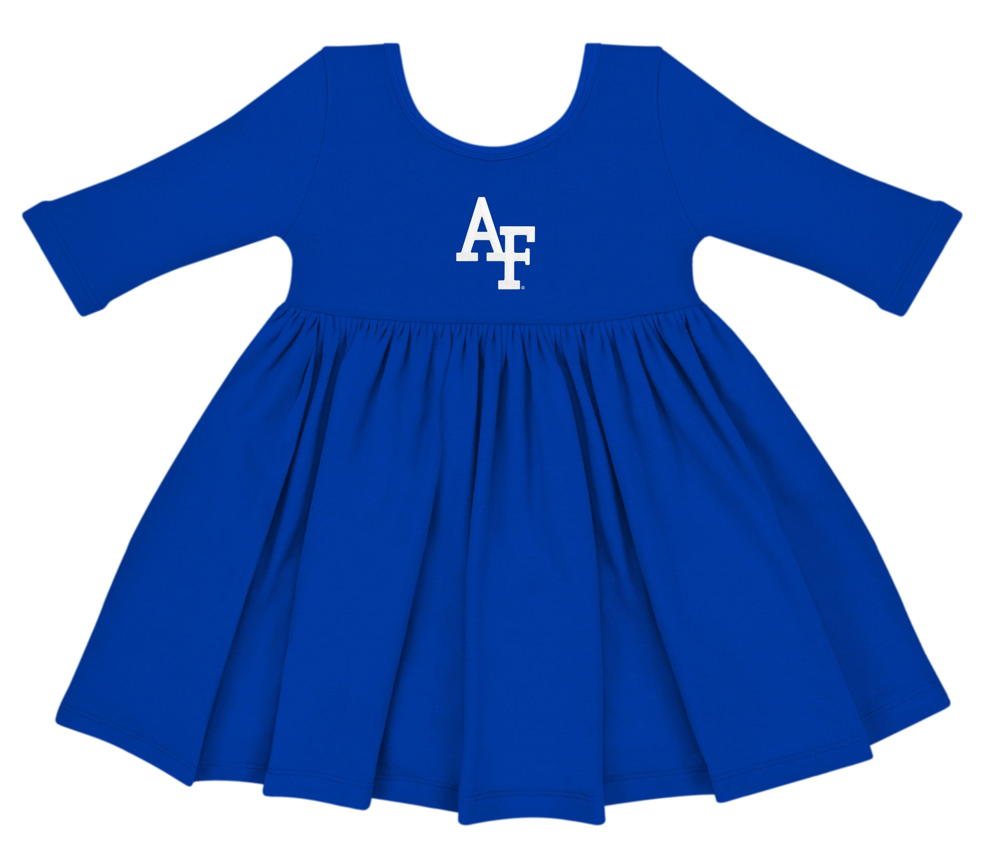 Let your little cadet twirl in style with the Air Force Spin Dress in Royal Blue. Soft, comfortable, and perfect for game days or everyday wear.