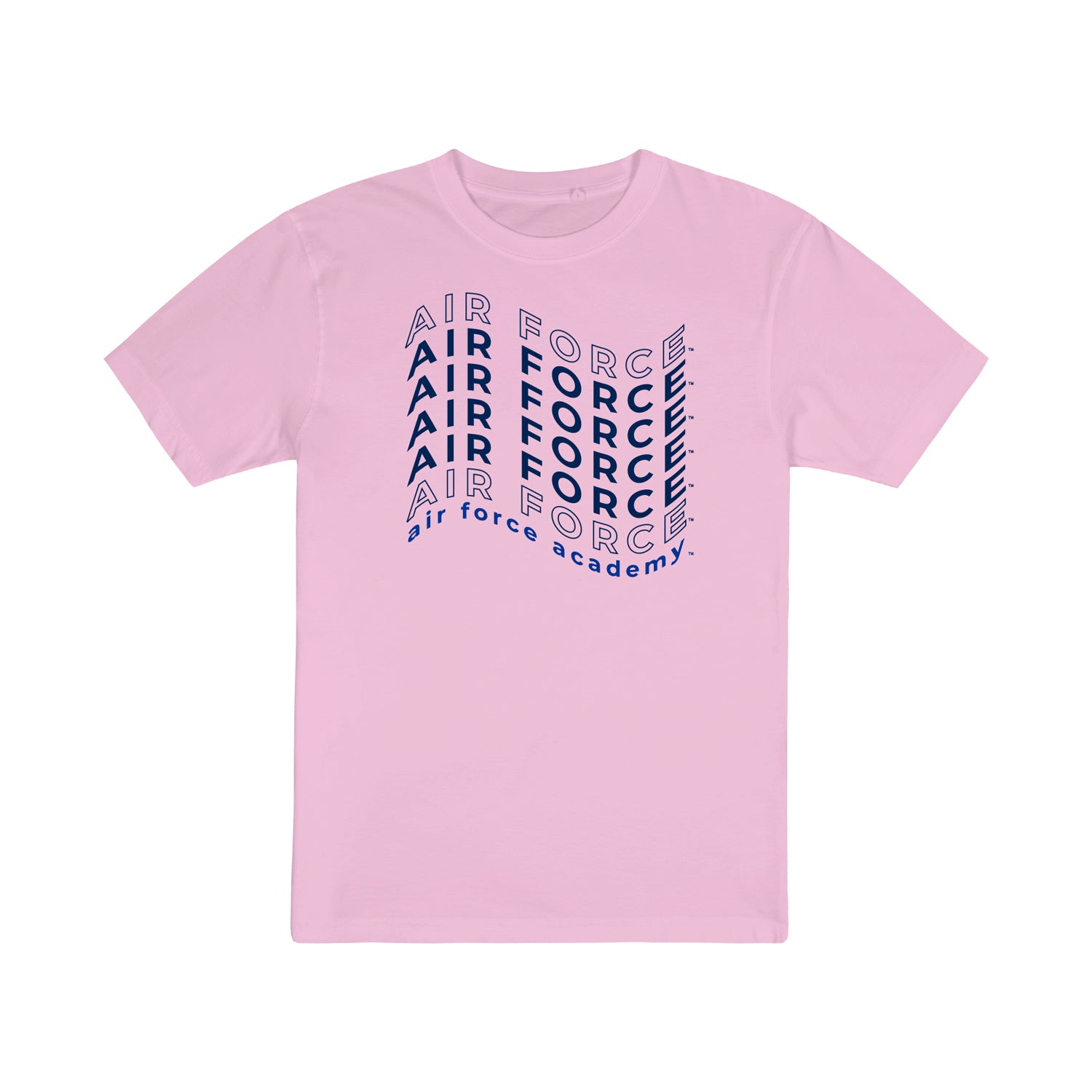 Add a soft touch to your USAFA wardrobe with the Blush Short Sleeve Tee. Featuring a light blush pink color and "Air Force Academy" in wavy script, this tee is perfect for casual wear and showing your Academy pride.