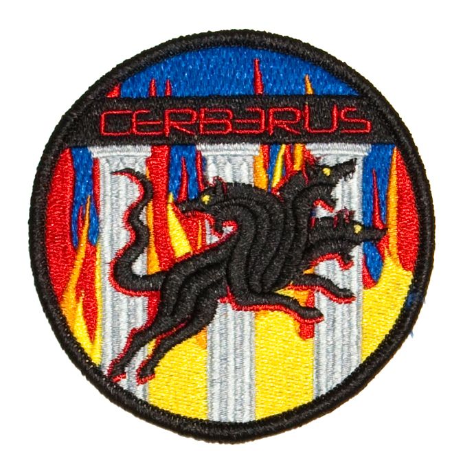 The three heads of Cerberus, the monstrous watchdog of the underworld in Greek mythology, symbolize loyalty, obedience, and fearlessness. The flames, suggesting eternity, represent the undying nature of the ideals of the third squadron.