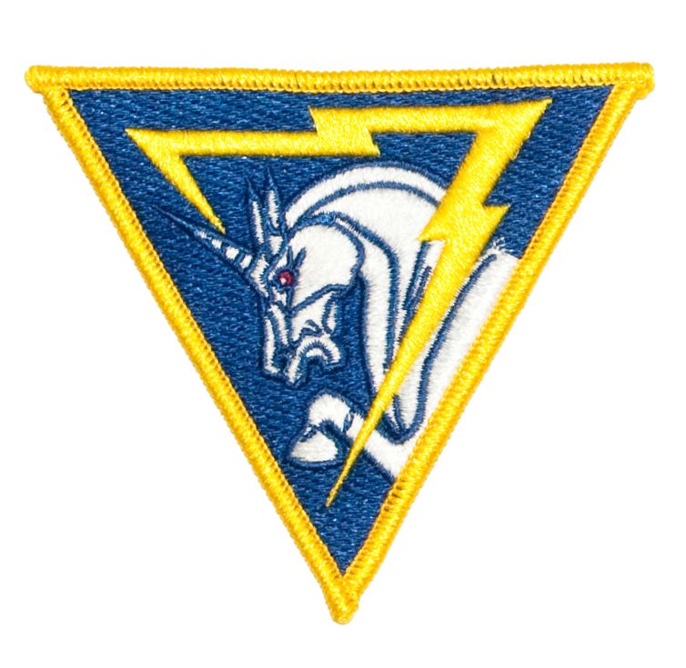 The unicorn, virtually invincible in battle, signifies strength while the lightning bolt symbolizes the speed with which the Air Force strikes in battle. The blue background stands for fidelity to the Air Force and the gold border represents valor and rewards.
