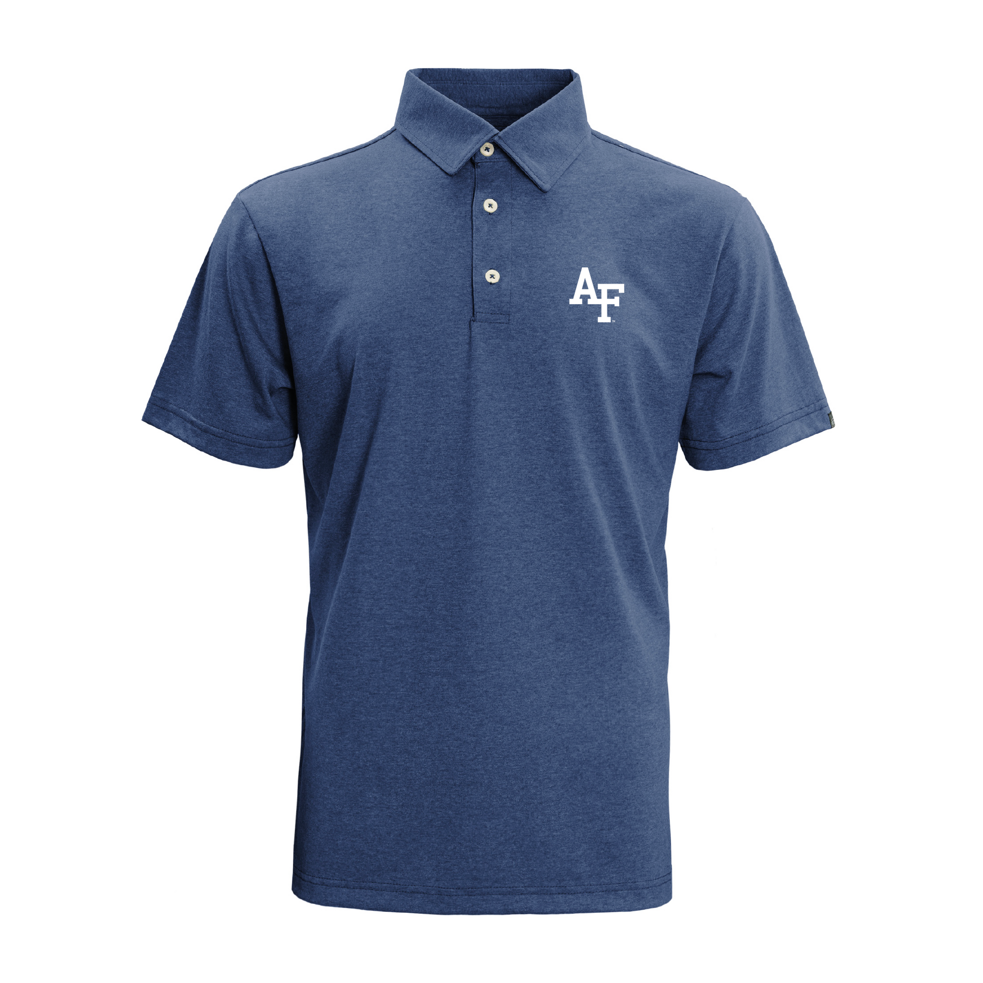 Show your Academy pride with the Eco Polo in Cobalt Blue. Made from 50/50 recycled cotton and polyester, featuring double-needle stitching, recycled pearl buttons, and USAFA branding — perfect for eco-conscious cadets and alumni.
