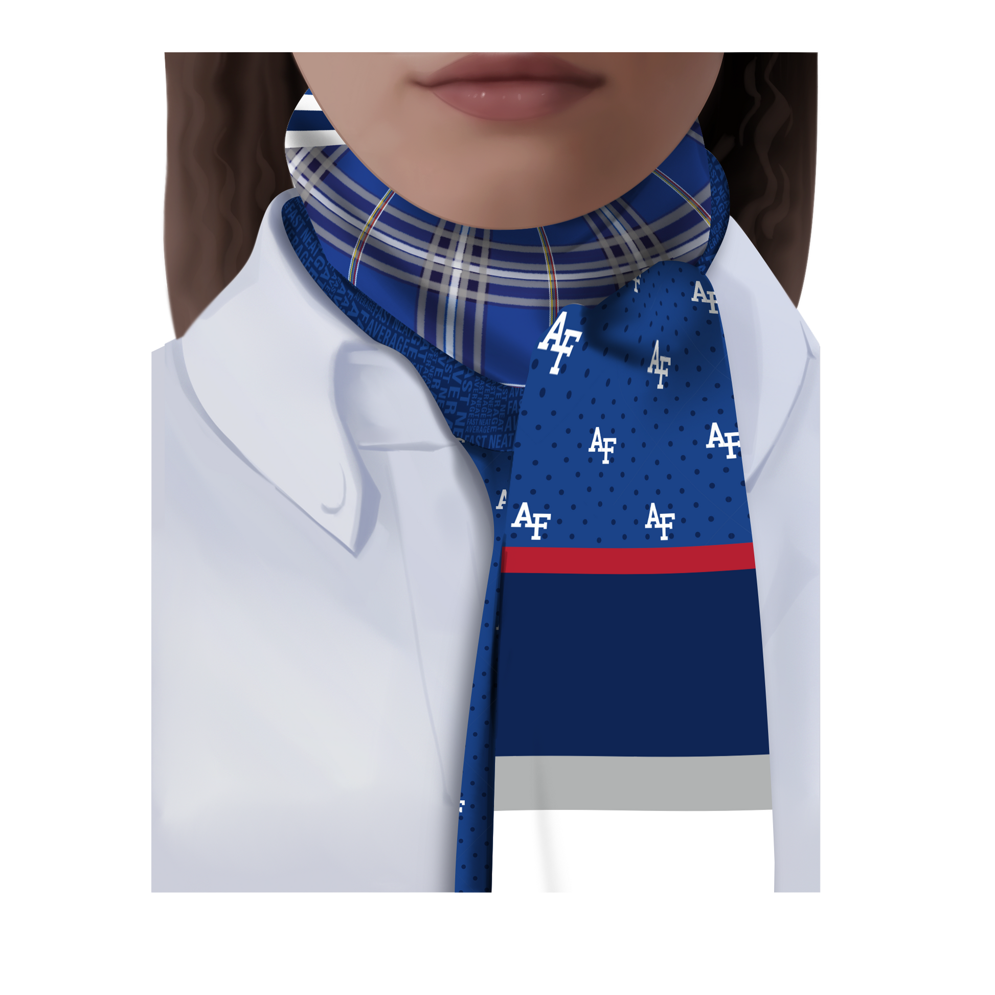 Elevate your Academy style with the USAFA Silk Skinny Scarf. Handmade, 3” x 71”, tubular silk design that folds beautifully versatile, elegant, and distinctly USAFA.