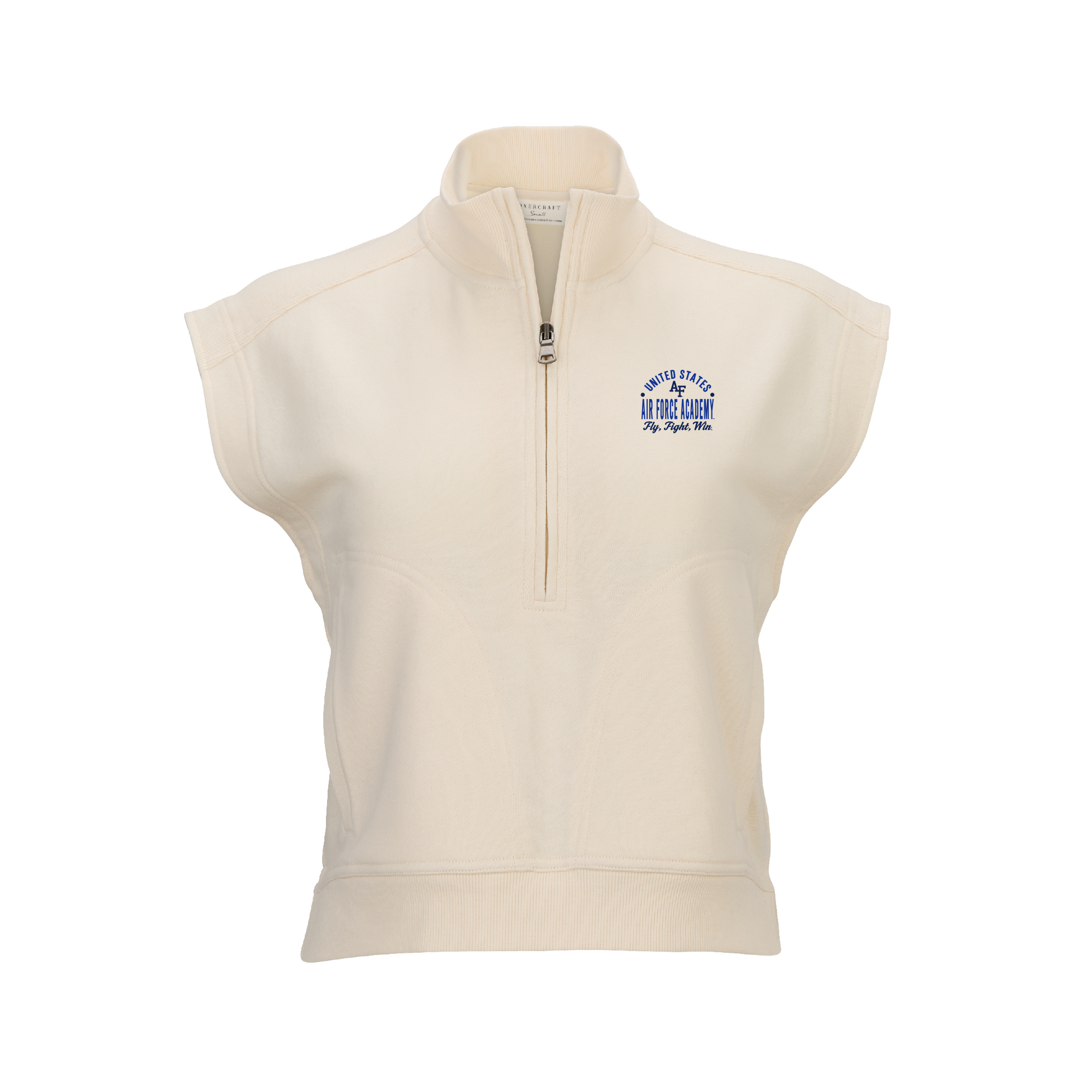 Ladies Sleeveless Terry Half Zip Pullover Beige