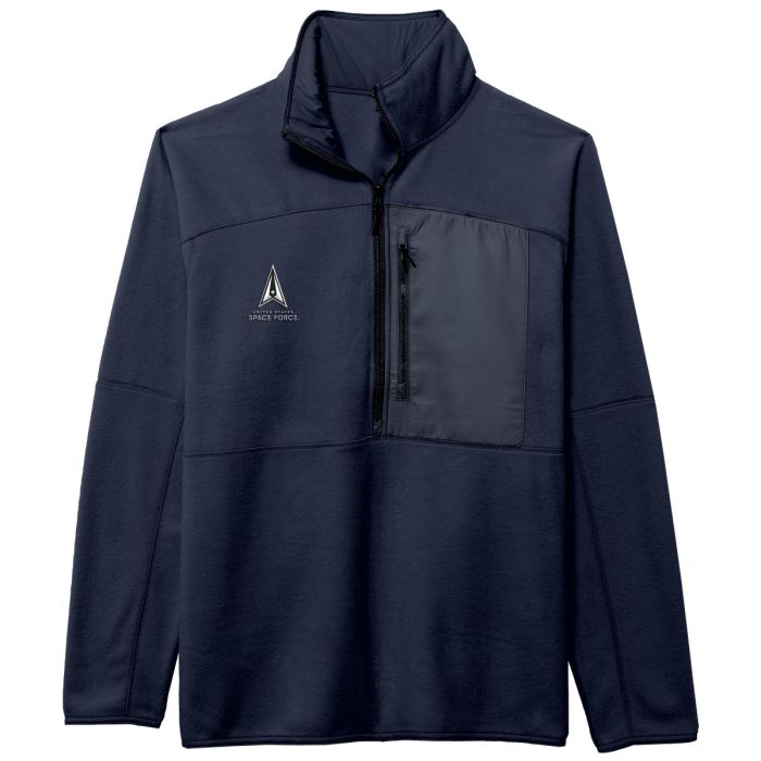 Pullover Fleece Shirt with 1/2 zip front features the Space Force insignia on the right chest and a zippered phone pocket on the left chest.