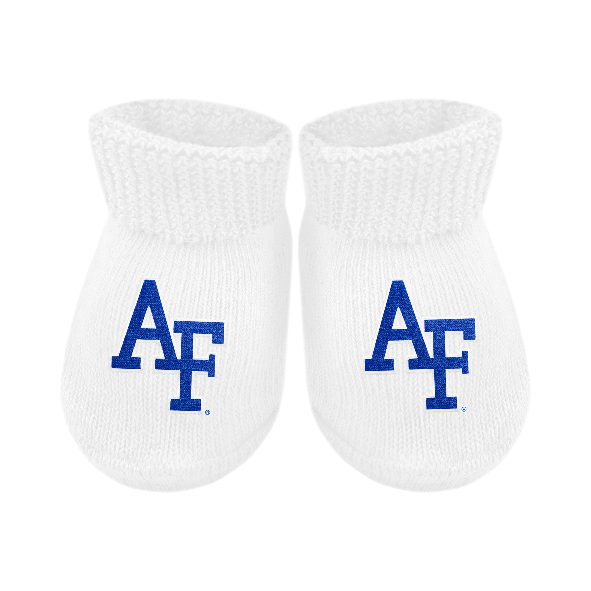 Celebrate a new arrival with the White Gift Box Infant Booties, presented in a clear display gift box. Soft, stylish, and perfect for gifting to future cadets.